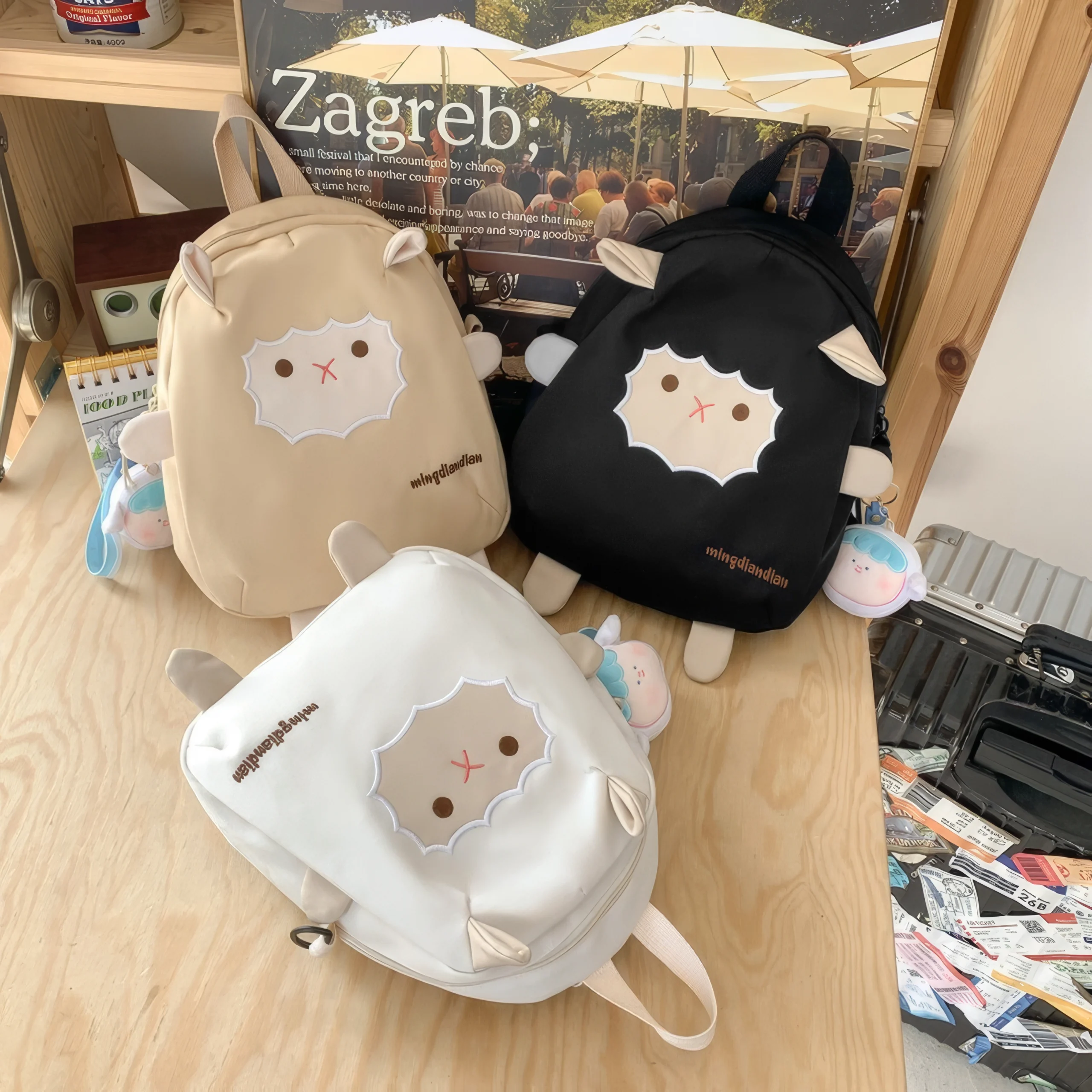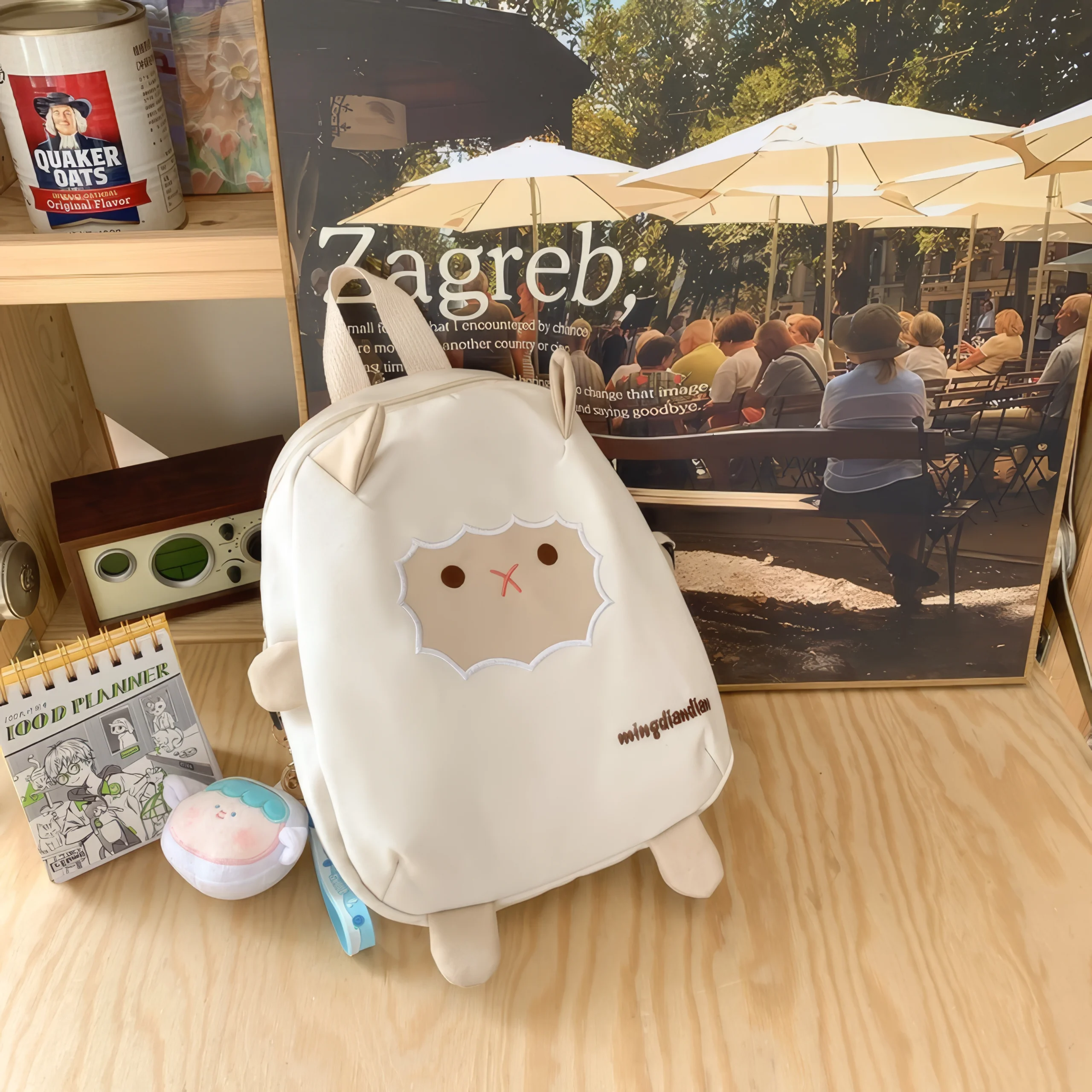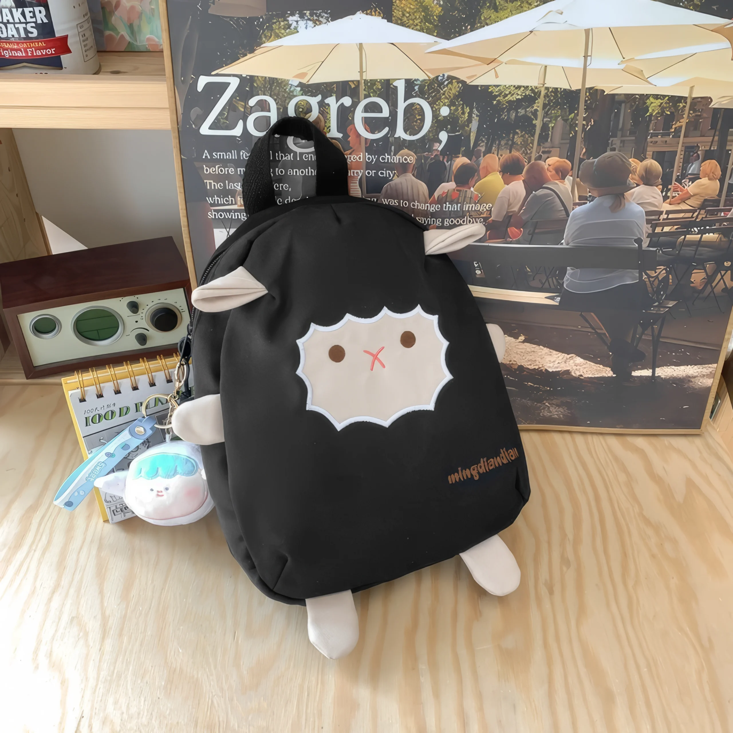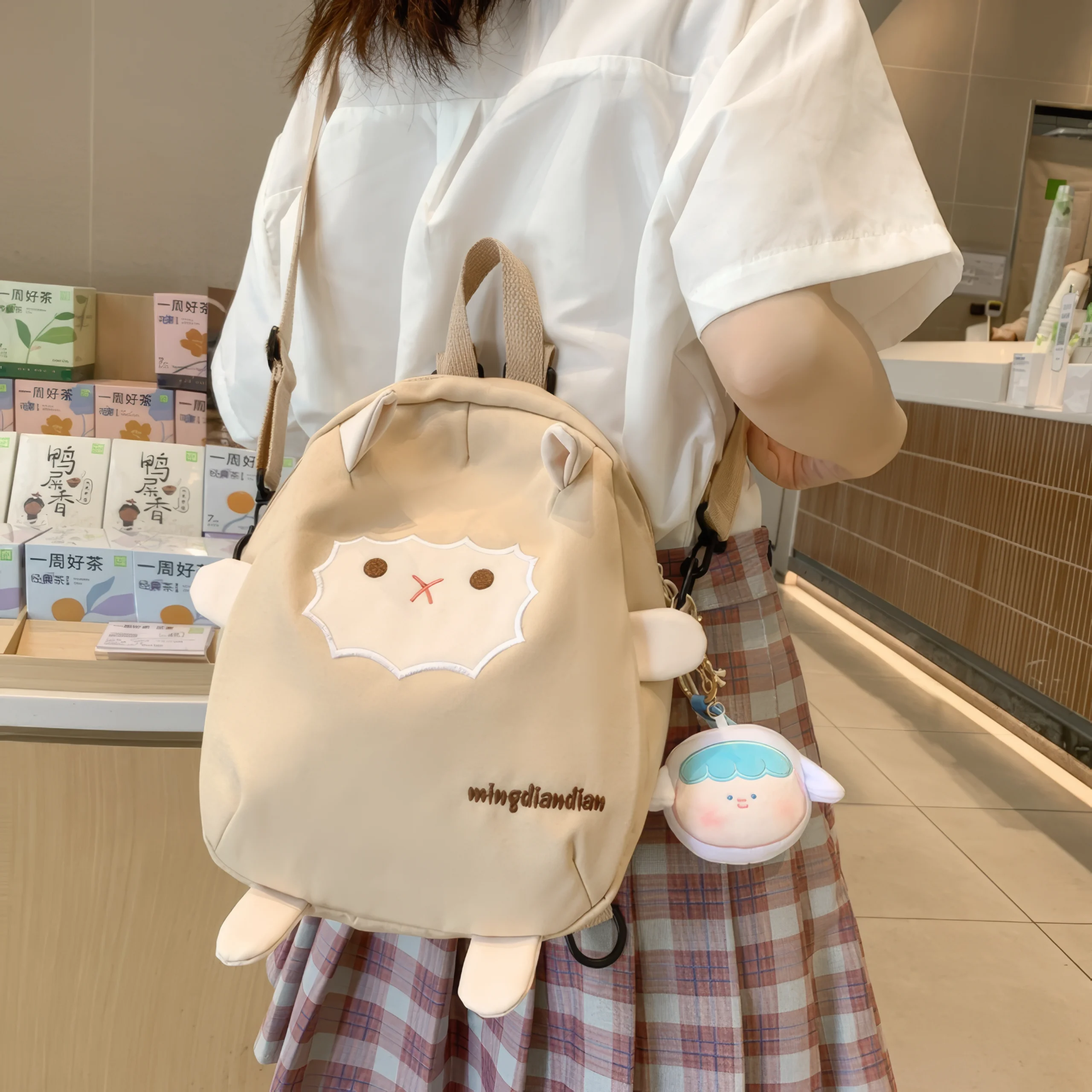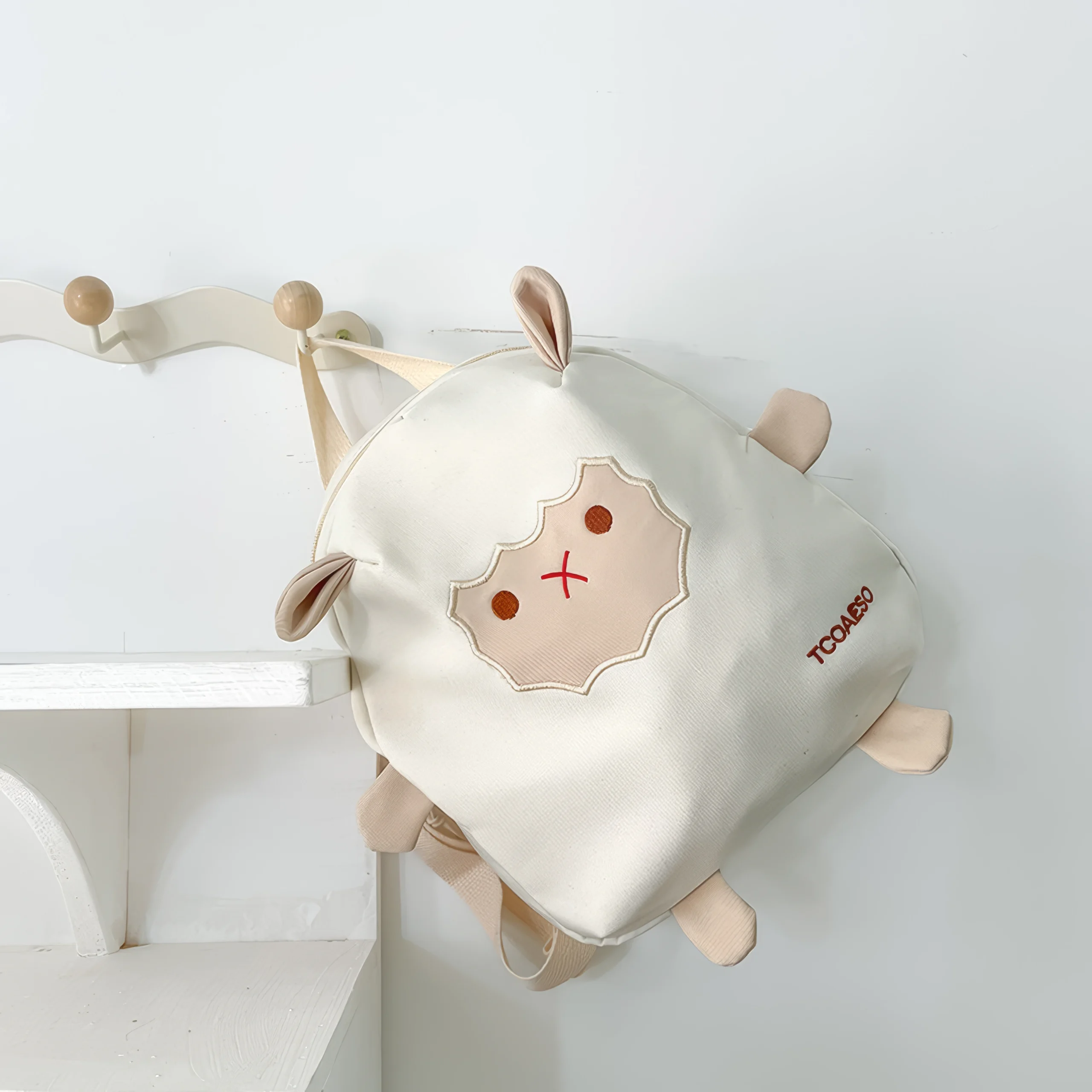 Two small ears peek out from the top, while four soft “paws” stick out from the corners, adding a plush toy-like quality that makes this backpack feel more like a companion than a bag