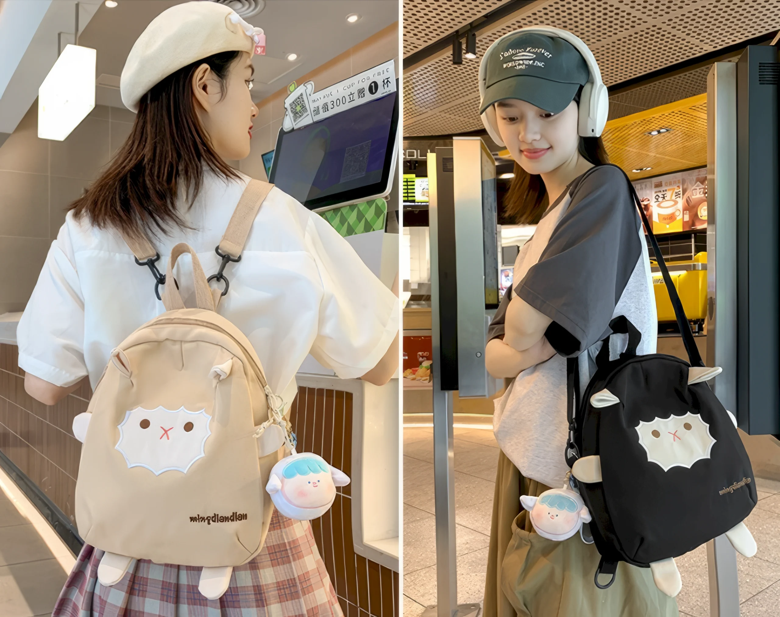 Beige Animal-Ears Backpack – Minimalist Cuteness for Little Explorers