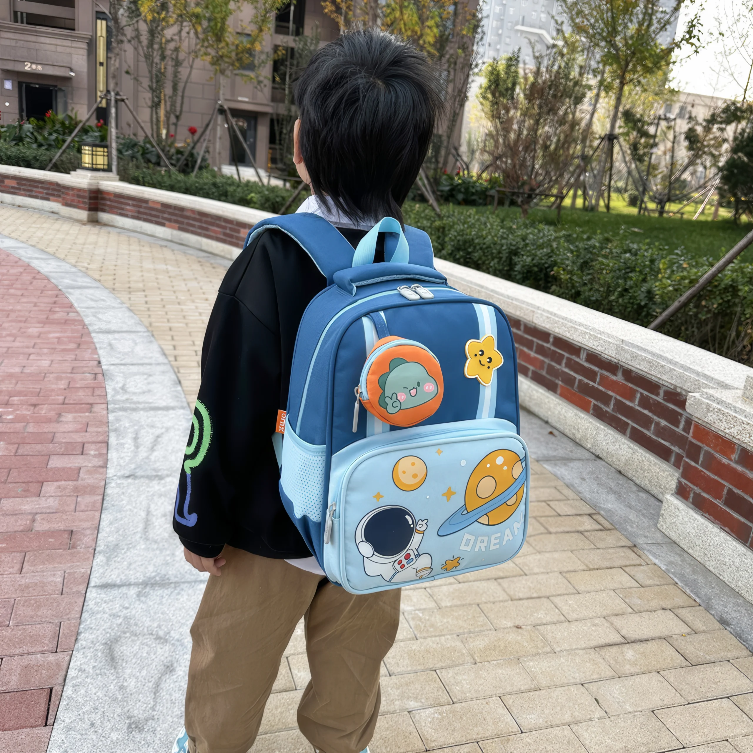 With two side compartments, this backpack offers convenient spots for water bottles or umbrellas, ensuring kids are always prepared