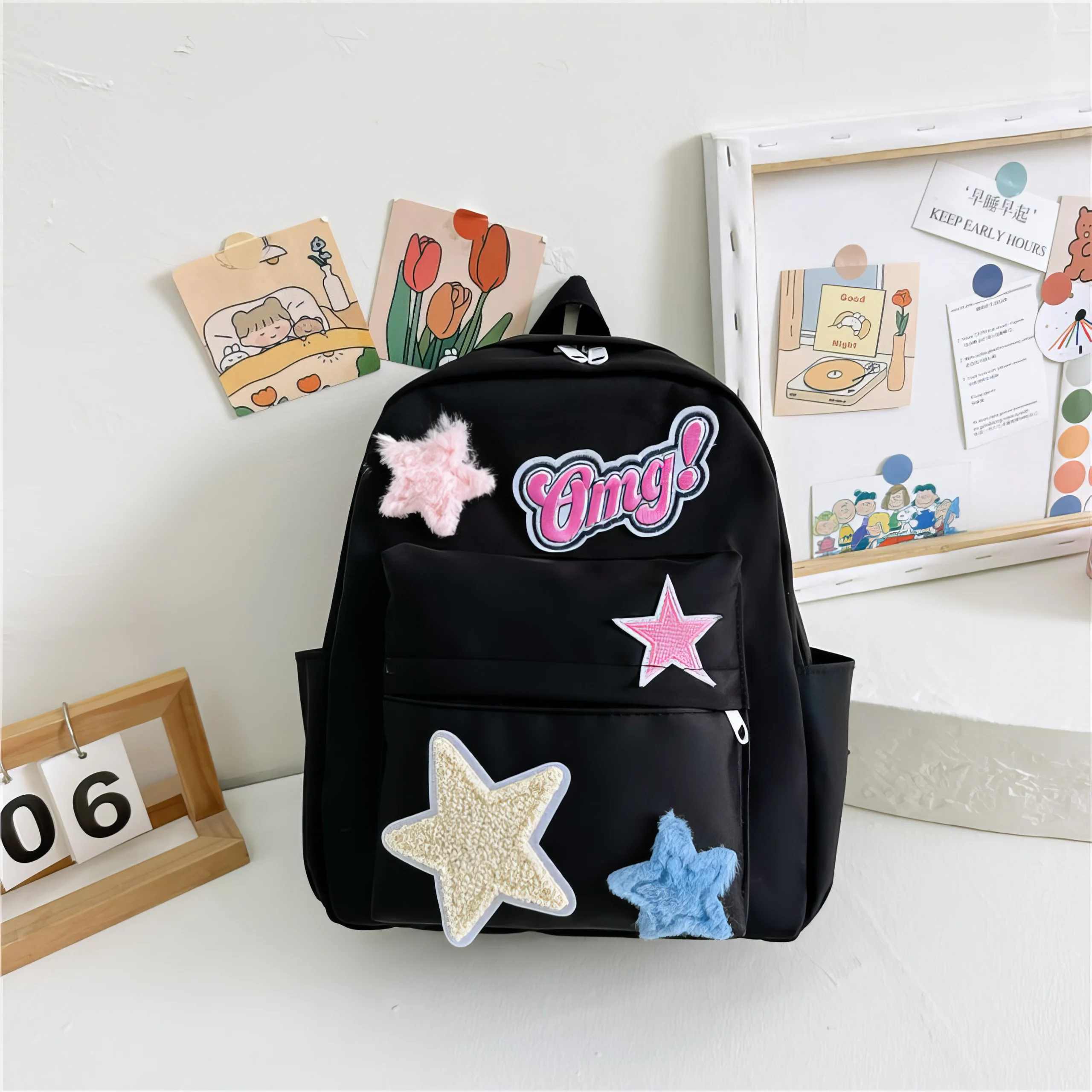 The cow print pocket isn’t just for style—it’s functional too. Perfect for storing pencils, small toys, or snacks, it keeps essentials within reach