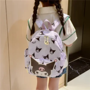 This lavender backpack is a hit with fans of Kuromi, the mischievous yet charming character. Featuring a bold Kuromi face patch on the front pocket and matching all-over print, it’s the perfect mix of cute and rebellious!