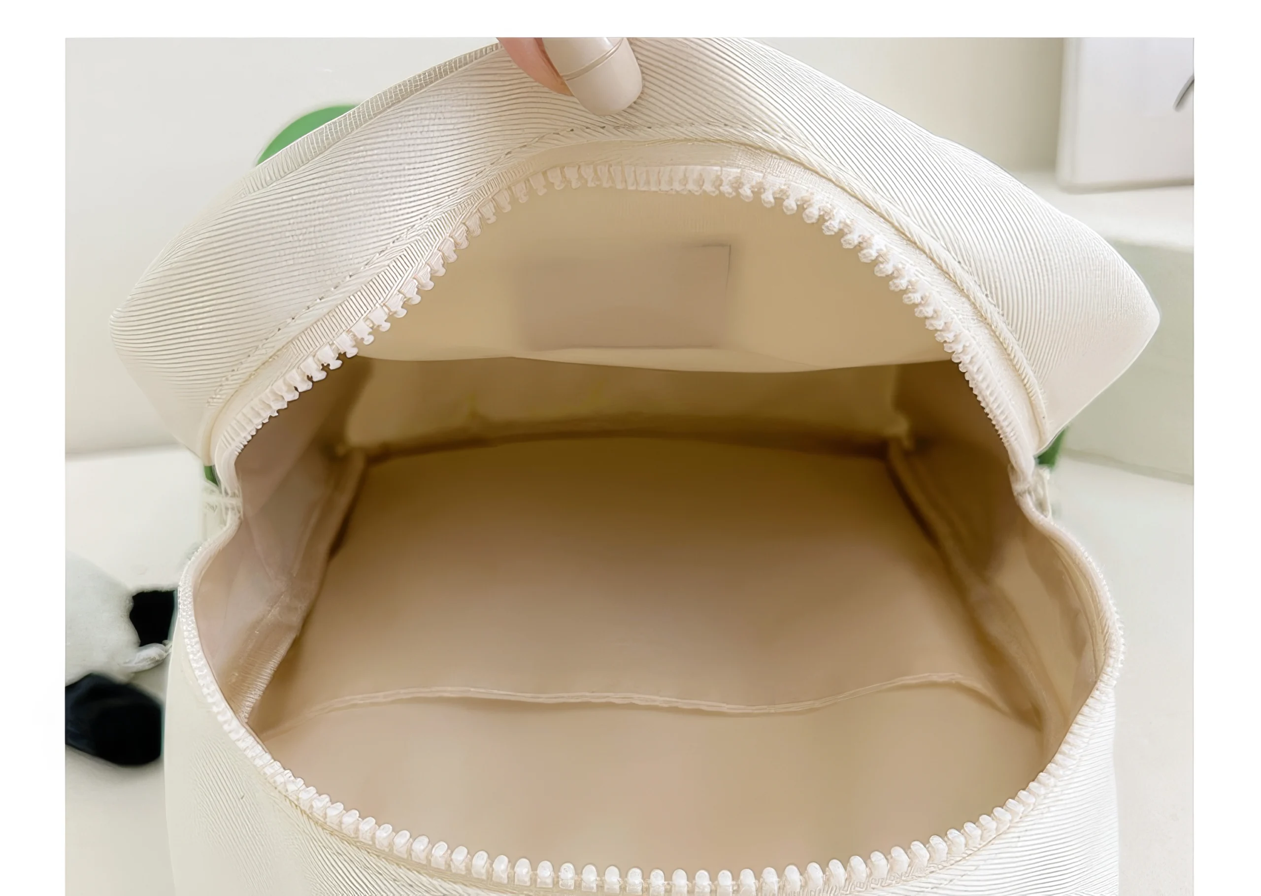 Attached to the side is a soft plush bunny-like keychain that adds an extra layer of cuteness. It gives the backpack a companion-like feeling and is sure to be a favorite detail for little ones